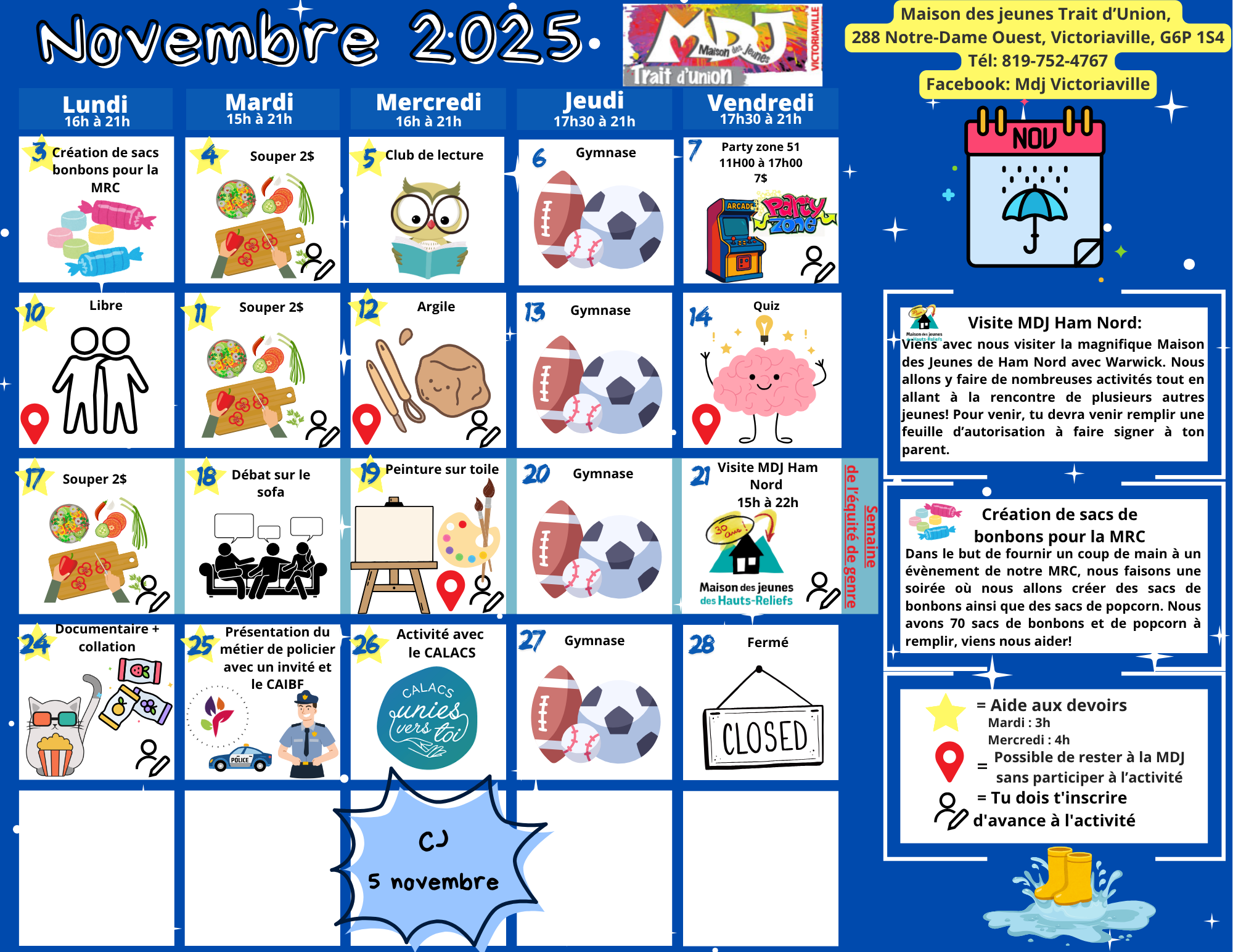 Tout le mois de novembre 2025 des activités et des ateliers vous sont offerts.