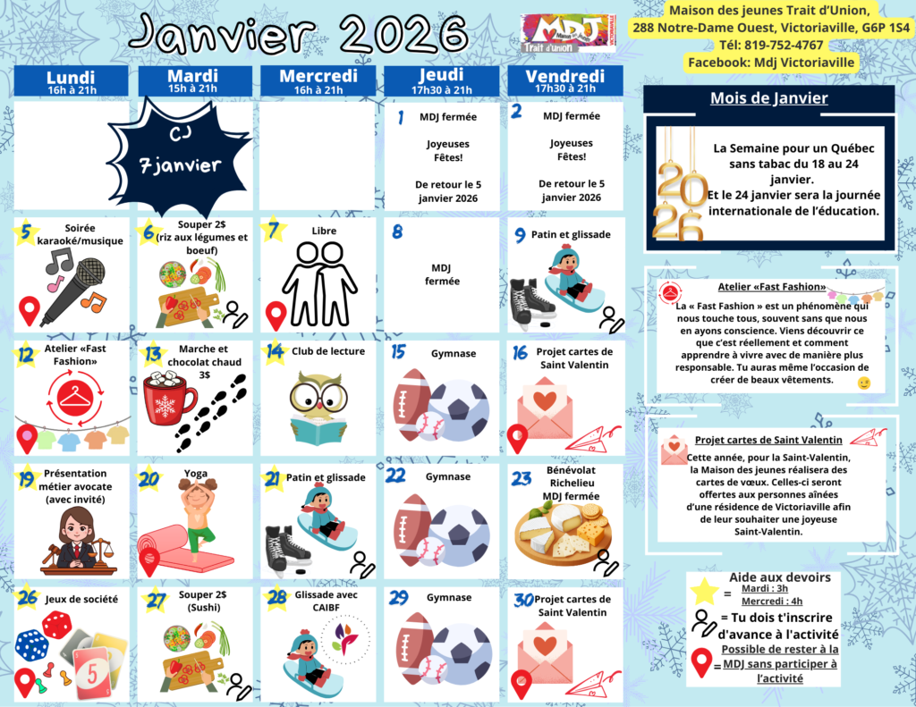 Tout le mois de janvier 2026 des activités et des ateliers vous sont offerts.