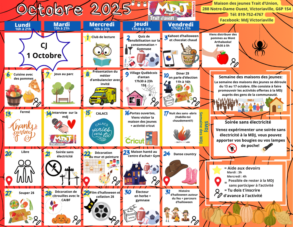 Tout le mois de octobre 2025 des activités et des ateliers vous sont offerts.